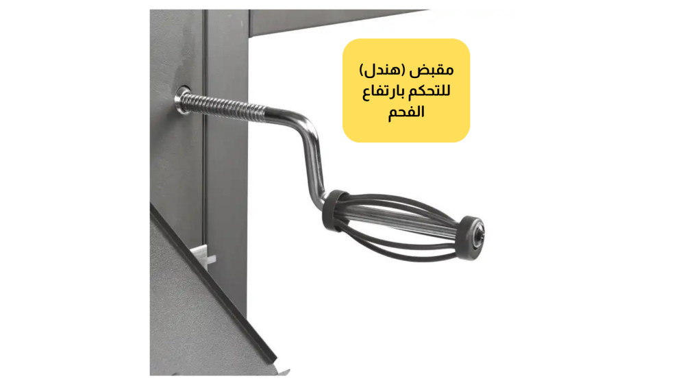 - إمكانية التحكم في ارتفاع الفحم، وقُربه من شبك الشواء عن طريق الهندل الجانبي