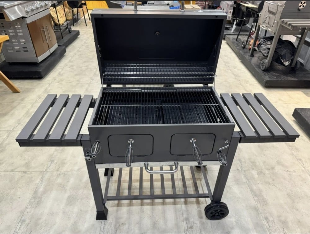 - إمكانية التحكم في ارتفاع الفحم، وقُربه من شبك الشواء عن طريق الهندل الجانبي