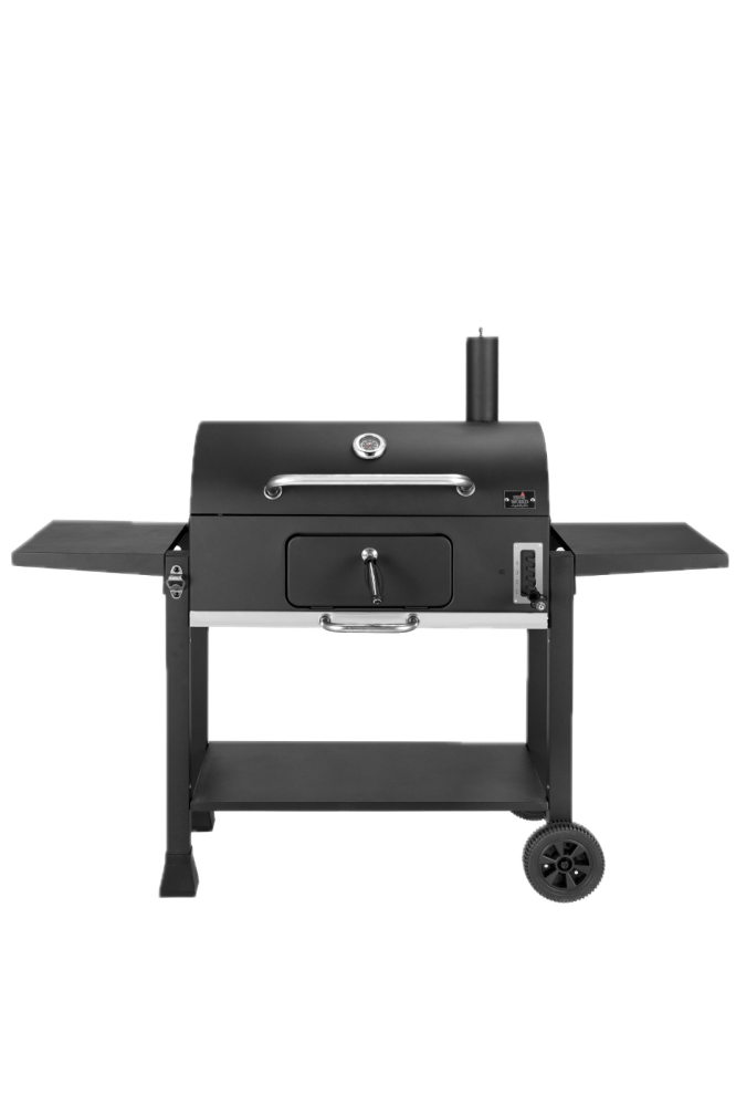 - إمكانية التحكم في ارتفاع الفحم، وقُربه من شبك الشواء عن طريق الهندل الجانبي بخمس مستويات