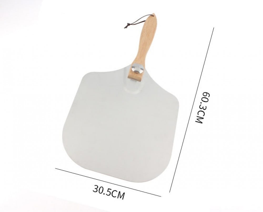 - حامل للبيتزا رفيع بمقبض خشبي طويل قابل للفك ببرغي قوي ومتين، مصمم بشكل مثالي، كأداة لحمل البيتزا داخل وخارج الفرن وتحريك البيتزا، دون حرق يد الخباز، كما يمكن شد المقبض وفكه بسهولة عند الحاجة