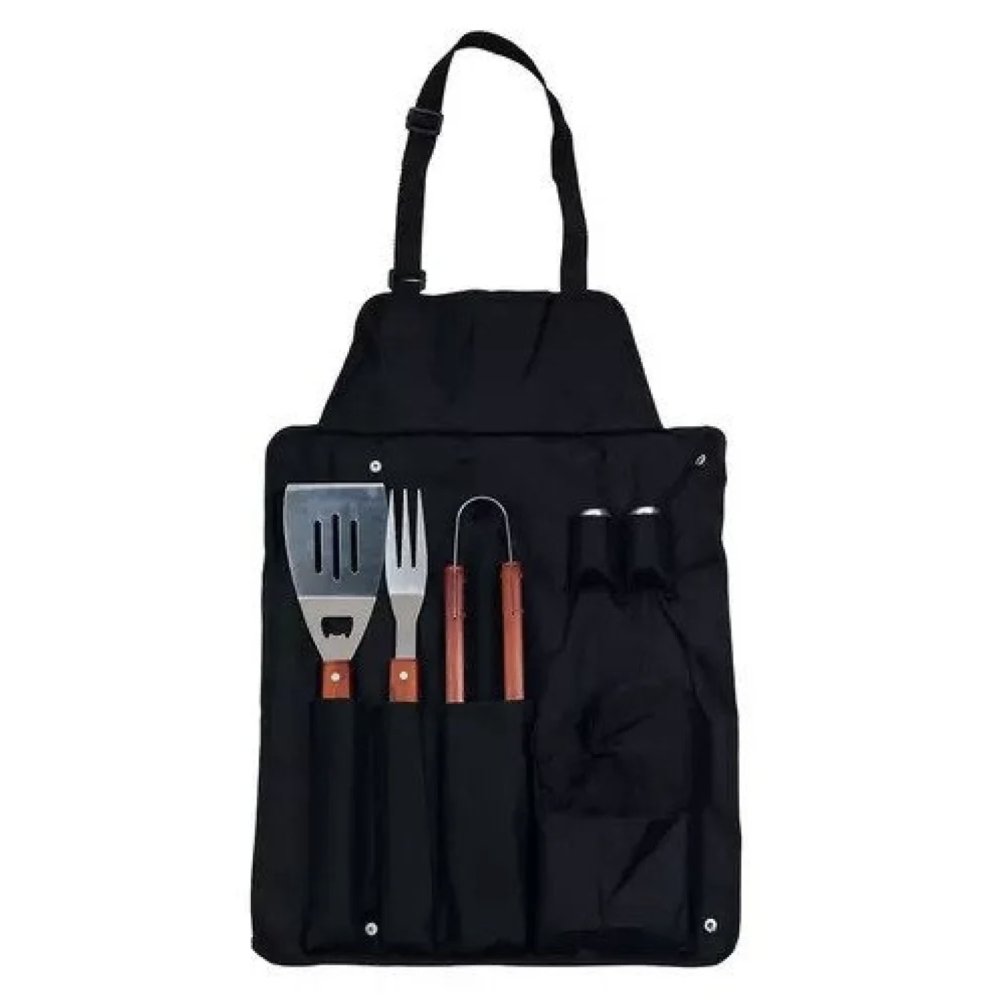 - تحتوي على عدة قطع: مريلة - ملقاط - ملّاس مخرم - شوكة كبيرة - قفاز شواء - طقم تبهير: ملّاحة وفلفل